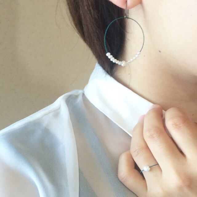 素材 : ヴィオラ弦, 淡水パール, 合金古美仕上げピアスパーツ